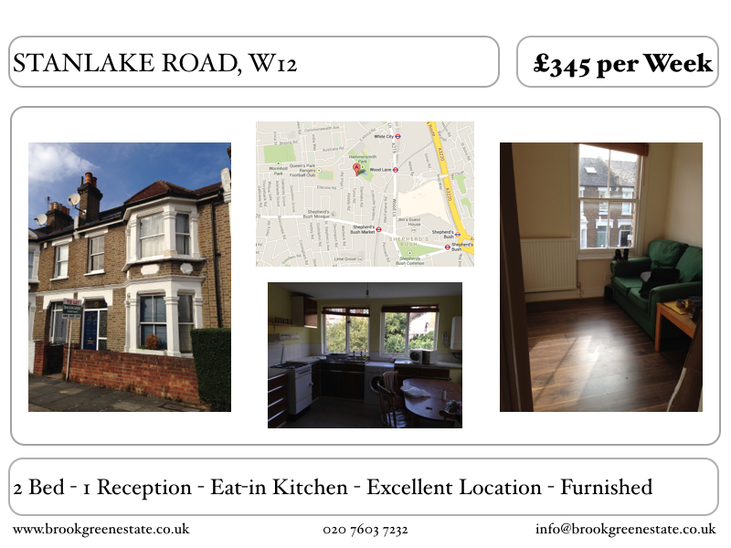 Newly refurbished, furnished, first floor flat on Stanlake road. A quiet street with good transport links.